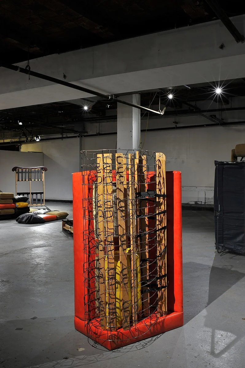 In previous works, Bryton has deconstructed mattresses and sofas, transforming them into orderly, almost cubistic sculptures. The shift from soft to hard parallels human history: from craft to mass production, human to cyborg, emotion to logic. While his work draws from modern stylistic choices, our ongoing fascination with technology keeps it relevant in a contemporary context.